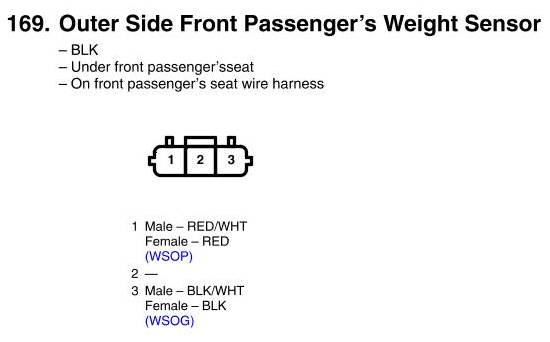View 169 - Outer Side Front Passenger's Weight Sensor Connector View