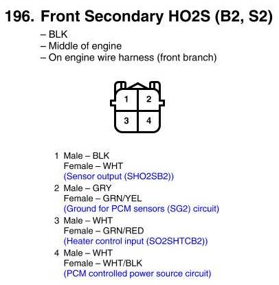 View 196 - Front Secondary HO2S (B2, S2) Connector View