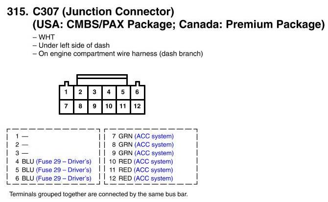 View 315 - C307 (Junction Connector) Connector View (USA: CMBS/PAX Package; Canada: Premium Package)