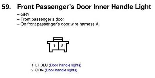 View 59 - Front Passenger's Door Inner Handle Light Connector View