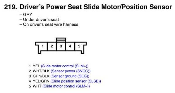 Driver's Power Seat Slide Motor/Position Sensor Connector View