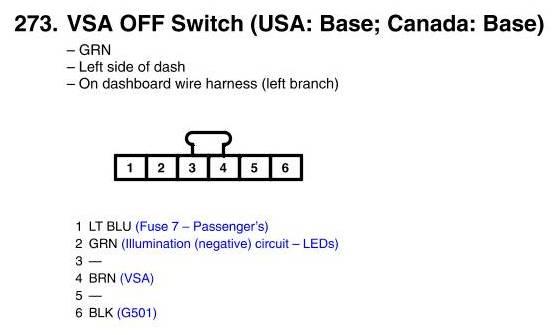 VSA OFF Switch Connector View (USA: Base; Canada: Base)