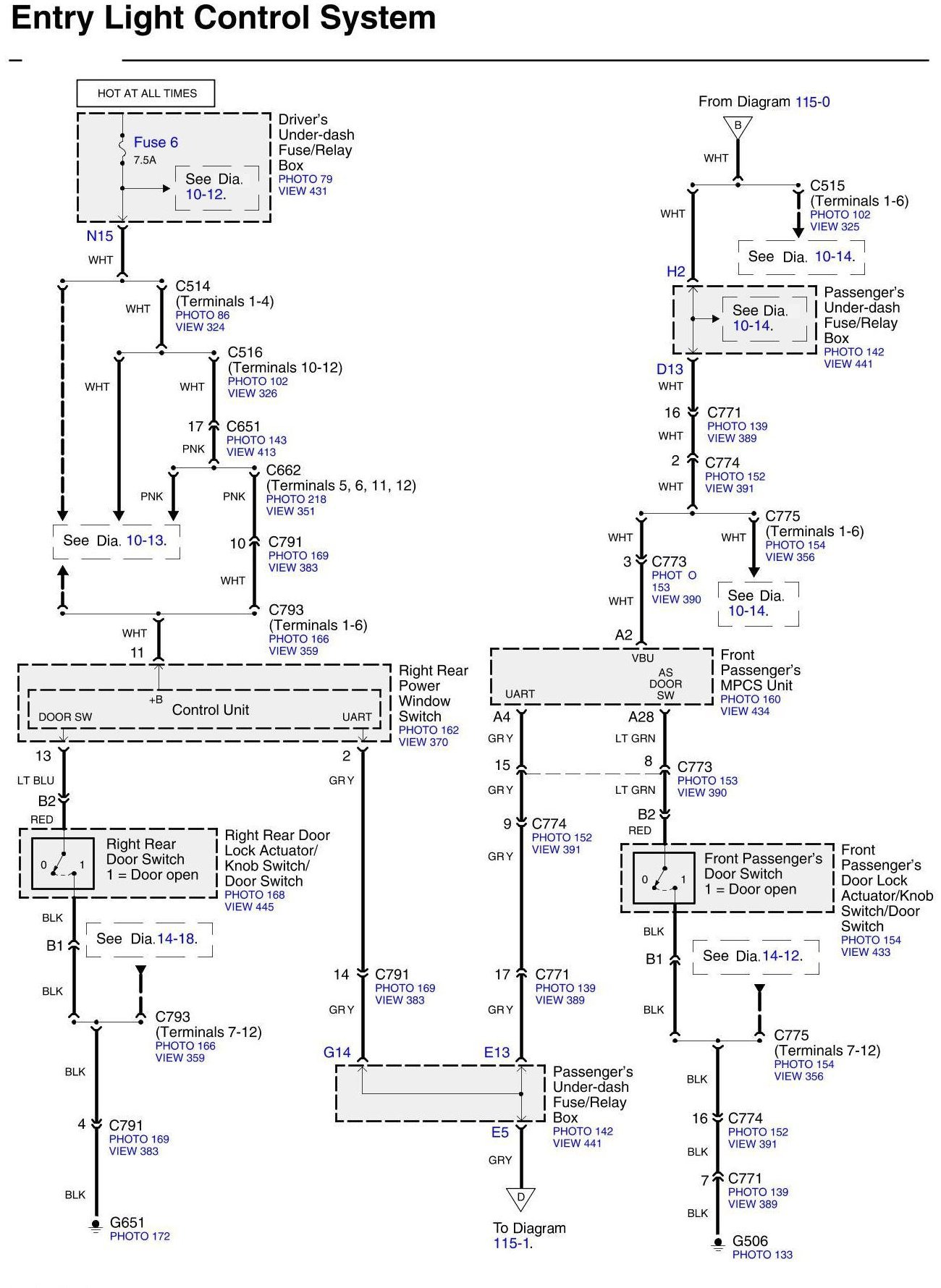 Locations: Location photographs (references to PHOTOS) referred to within these diagrams can be found at Locations by Photo Number. Component Locations