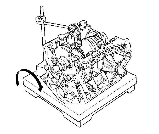 9. Measure the runout on all of the main journals. Rotate the crankshaft two complete revolutions. The difference between measurements on each journal must not be more than the service limit.