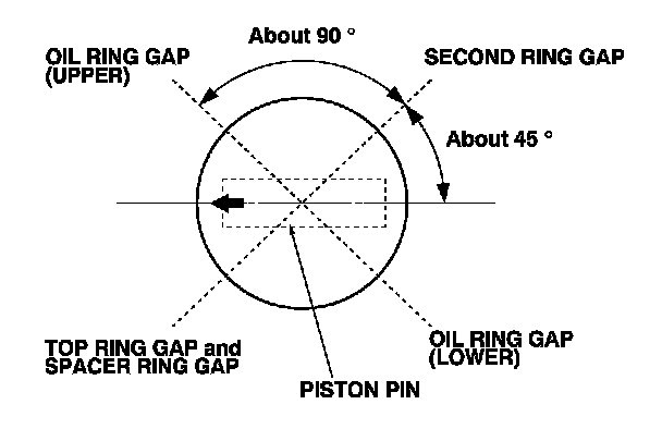 9. Position the ring end gaps as shown: