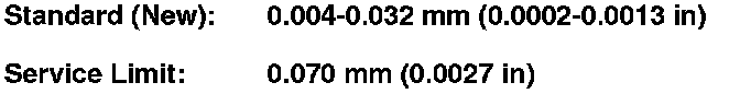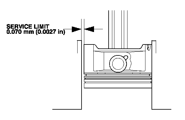 6. Calculate the difference between cylinder bore diameter and piston diameter. If the clearance is near or exceeds the service limit, inspect the piston and cylinder bore for excessive wear.