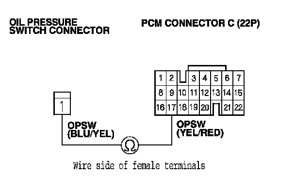 8. Disconnect PCM connector C (22P) and the oil pressure switch connector.