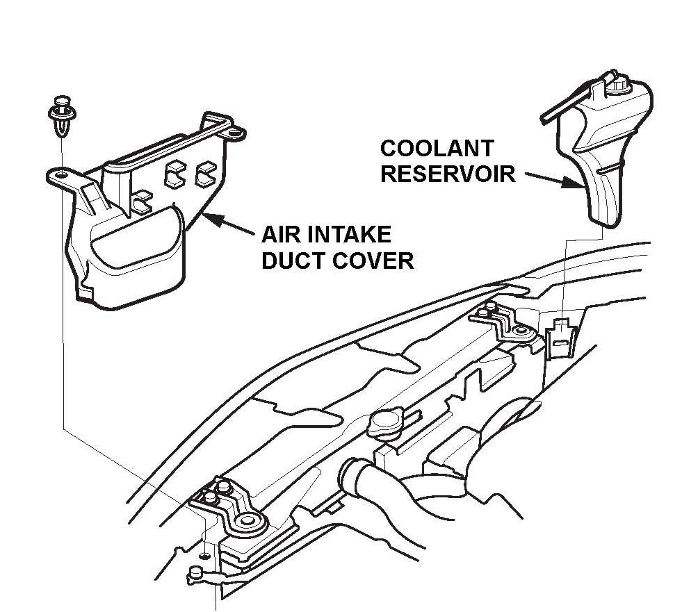 7. Remove the air intake duct cover and the coolant reservoir.