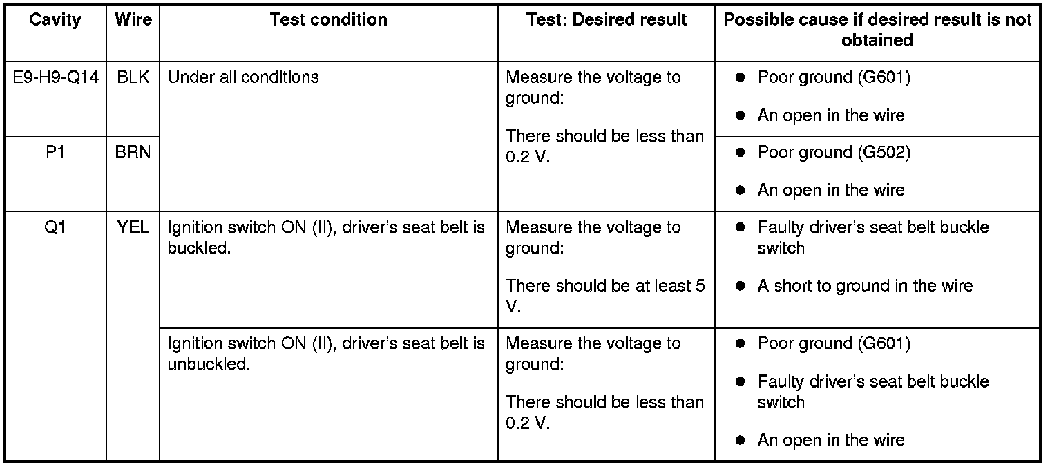 - If the beeper sounds and the seat belt reminder light flashes, go to step 12.