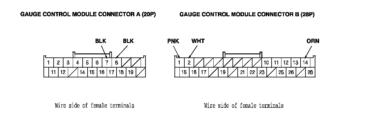 8. Disconnect gauge control module connectors A (20P) and B (28P).