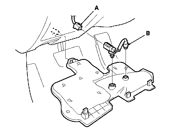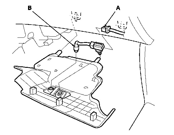 2. Disconnect the 2P connector (A) from the passenger's footwell light (B).