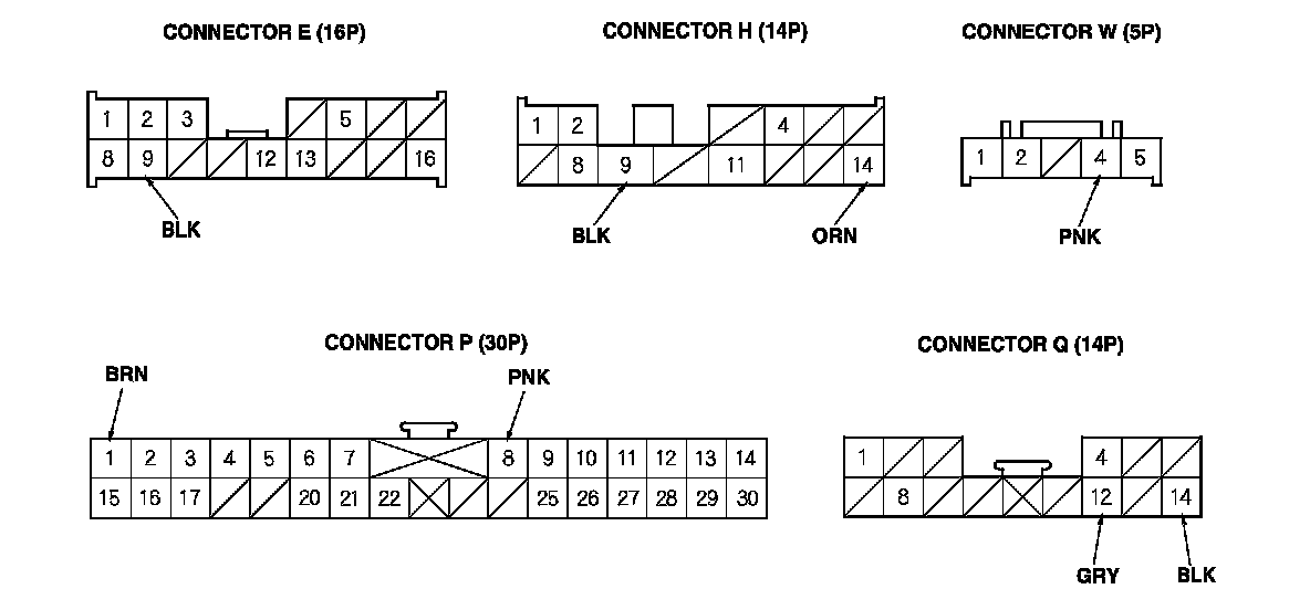 3. Disconnect driver's under-dash fuse/relay box connectors E, H, P, Q, and W.
