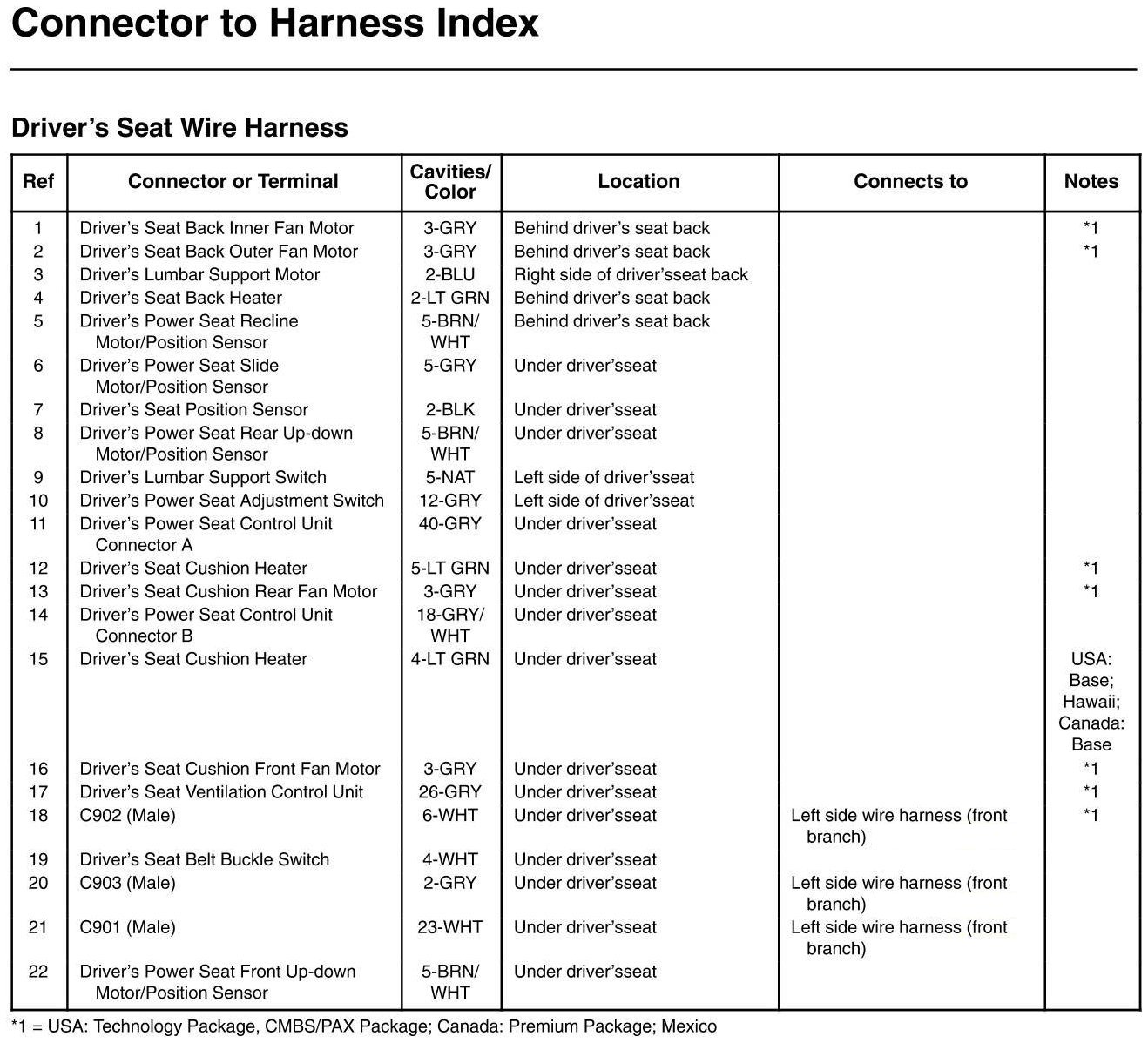 Driver's Seat Wire Harness Connector And Harness Locations