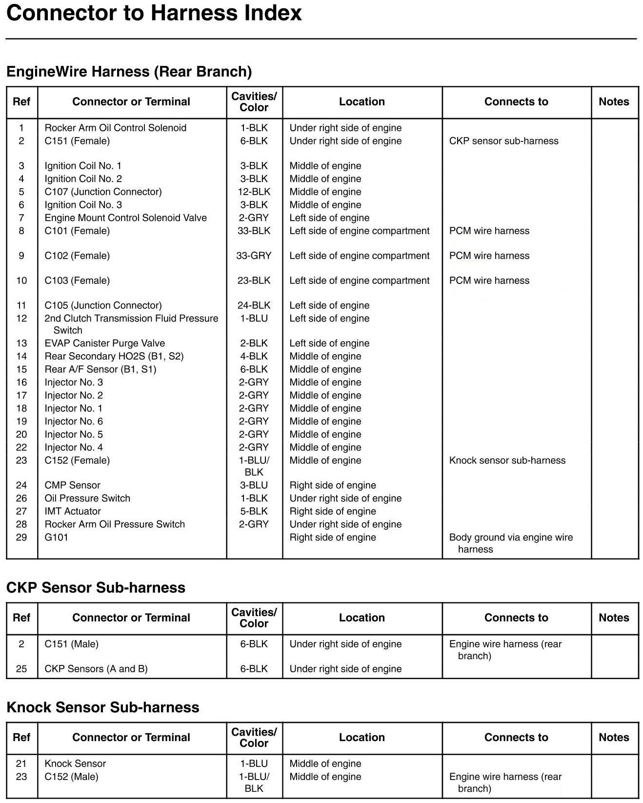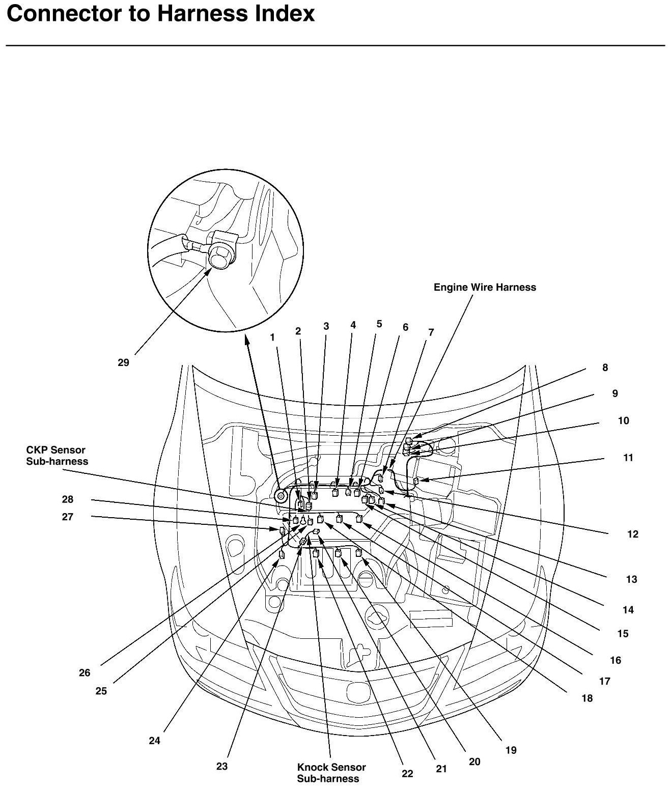 Engine Wire Harness (Rear Branch), CKP Sensor Subharness And Knock Sensor Subharness Connector And Harness Locations