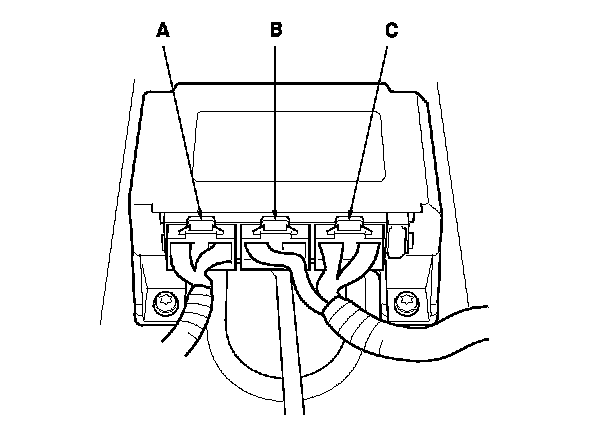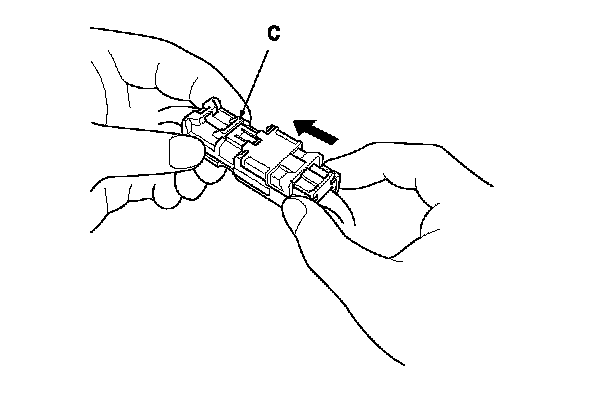 When SRS unit connectors A (28P) or C (28P) are disconnected, a short circuit is automatically created in the connector to prevent accidental deployment of the airbag. The circuit may need to be opened when diagnosis is done on the circuit. Insert a short canceller (No. 070AZ-SAA0100) in the specified cavities when necessary to keep the circuit open for diagnosis.
