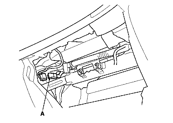 4. Remove the glove box, Glove Box Removal/Installation then disconnect the front passenger's airbag 4P connector (A) from dashboard wire harness.