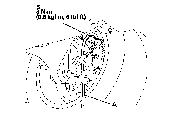 4. Attach a length of clear drain tube (A) to the bleed screw (B), then loosen the bleed screw to allow air to escape from the system. Then tighten the bleed screw securely.