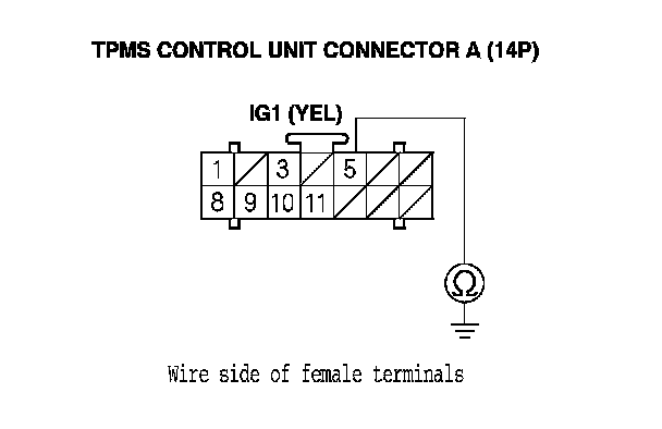 8. Check for continuity between body ground and the TPMS control unit connector A (14P) terminal No. 5.