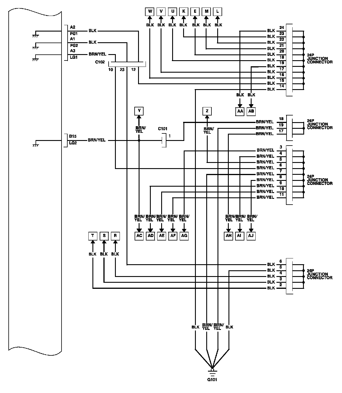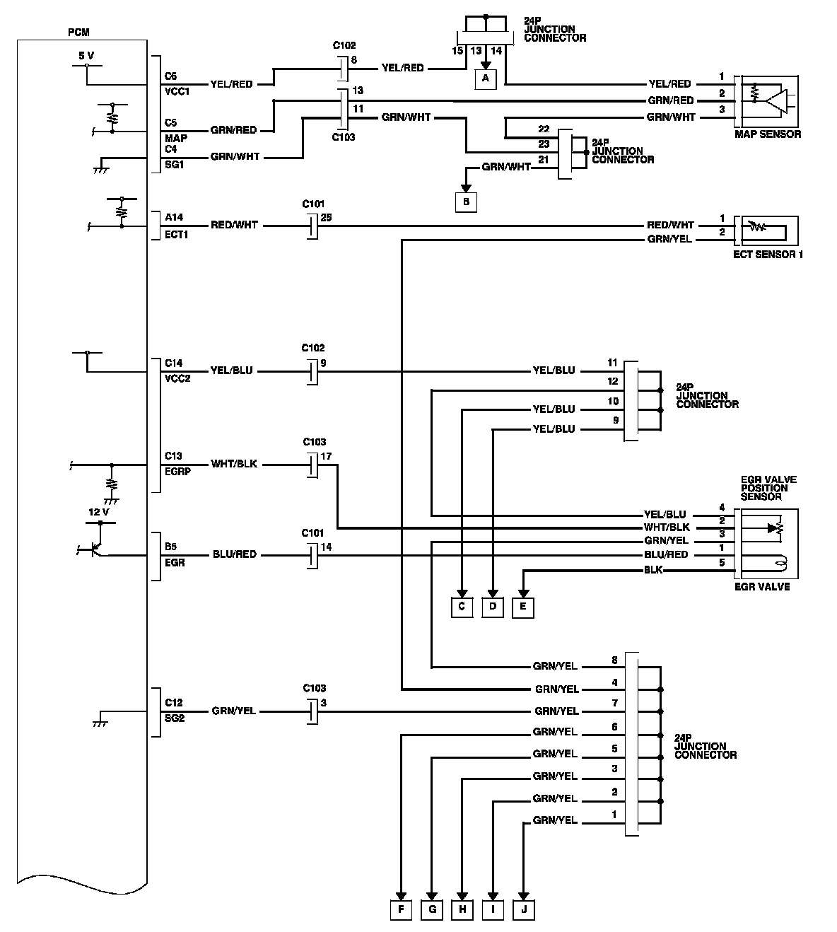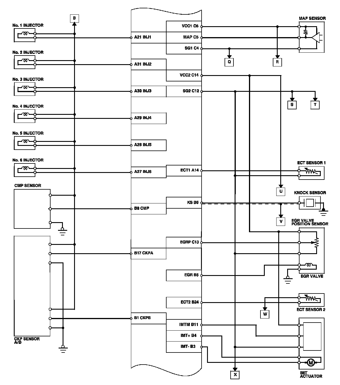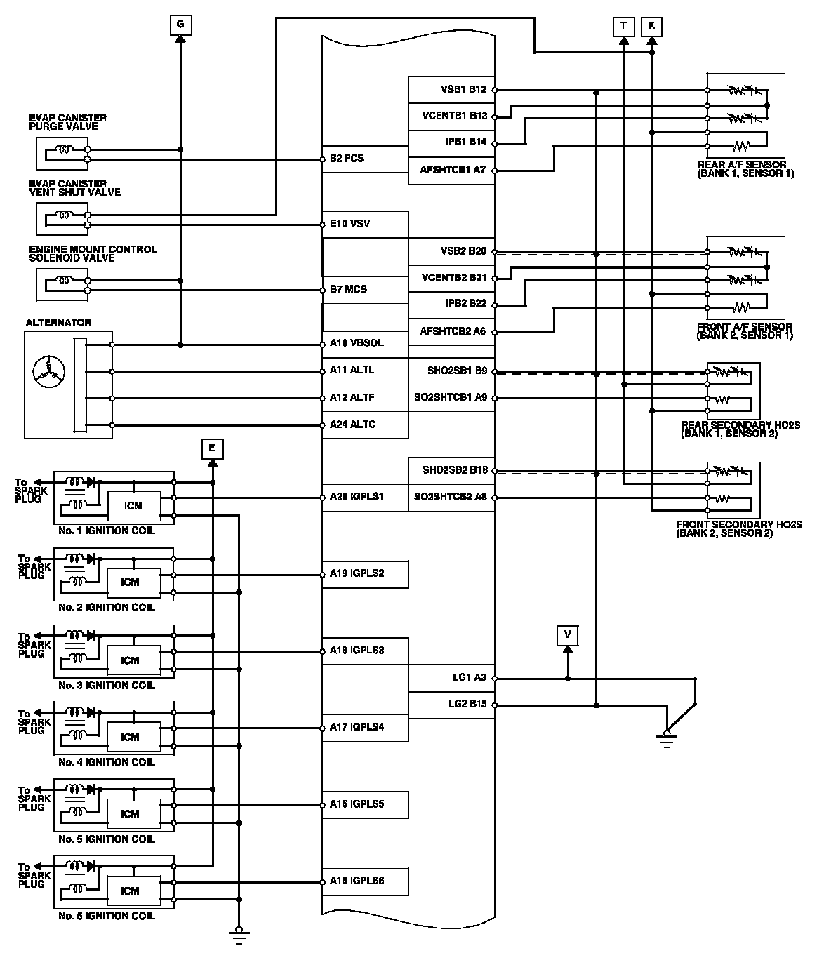 PCM Inputs and Outputs at PCM Connector B (24P)