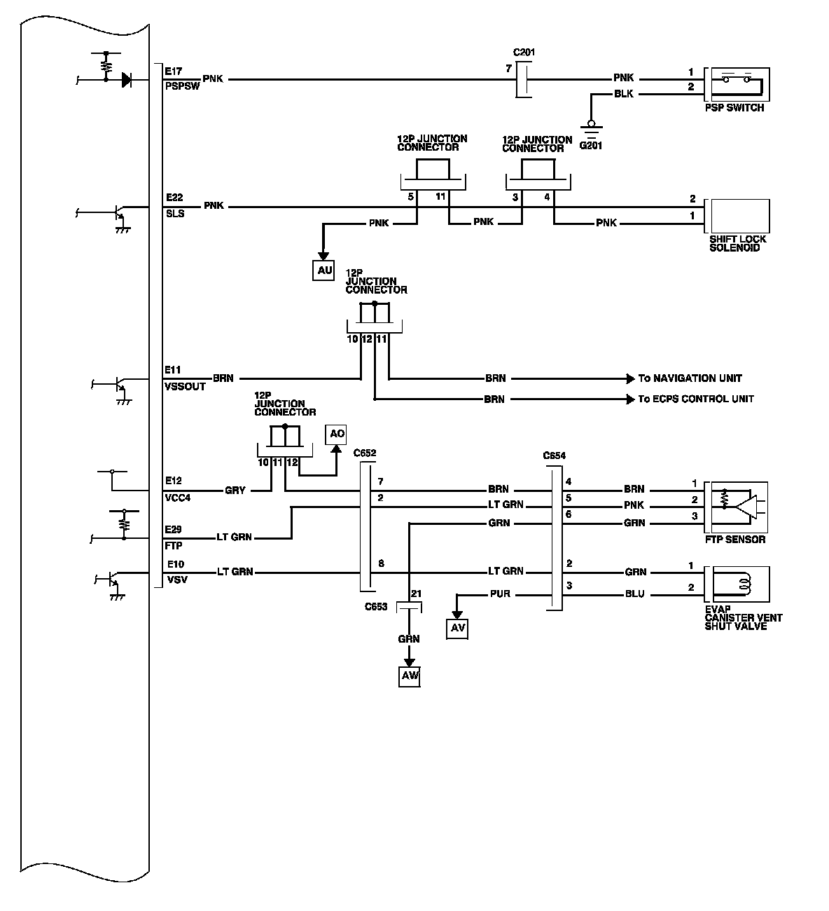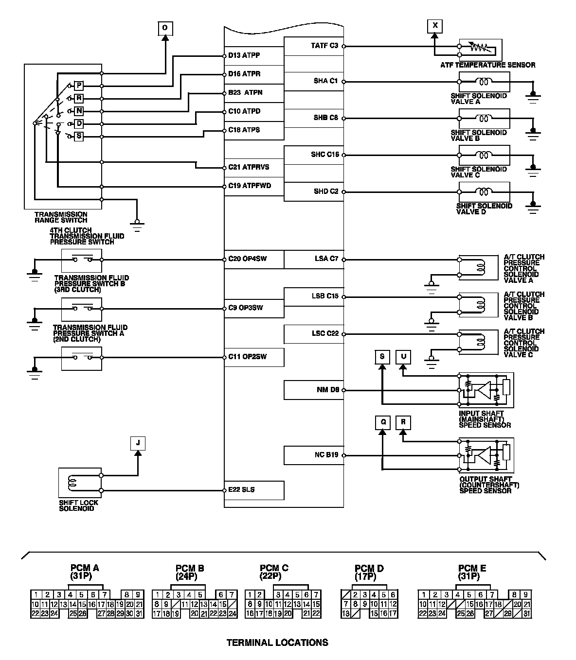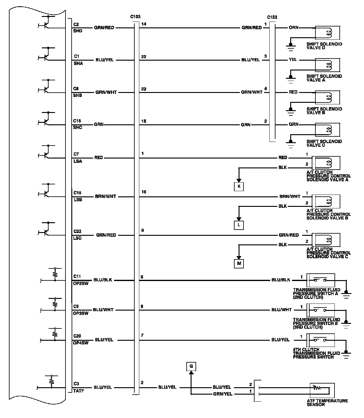 PCM Inputs and Outputs at PCM Connector C (22P)