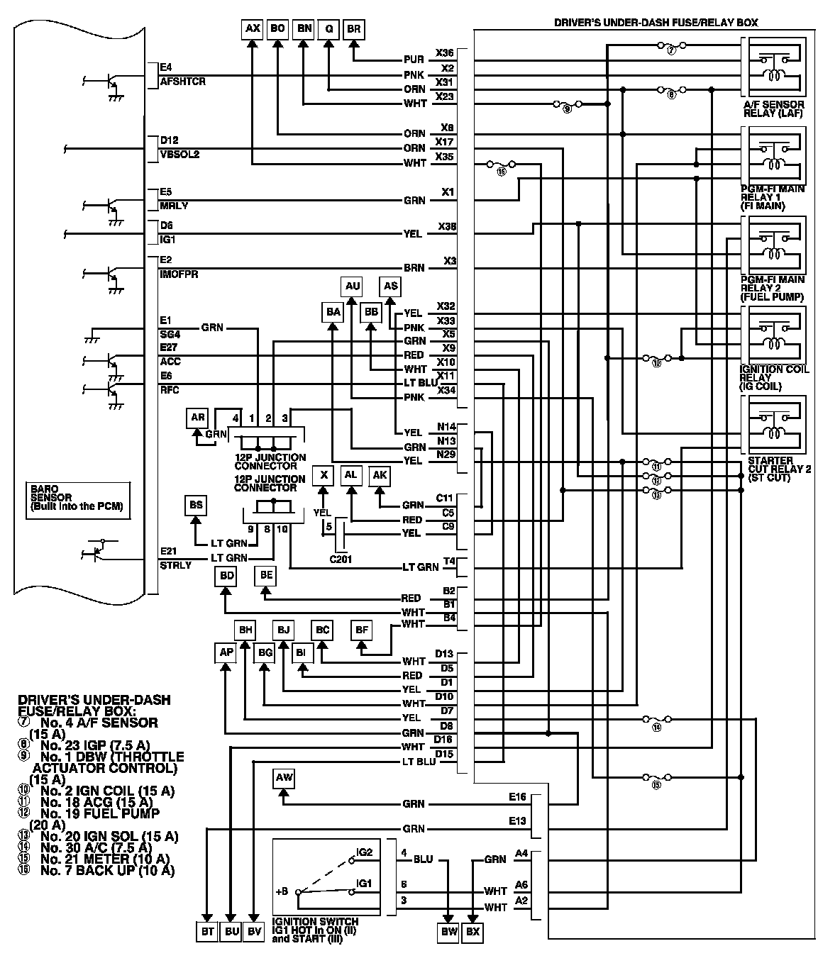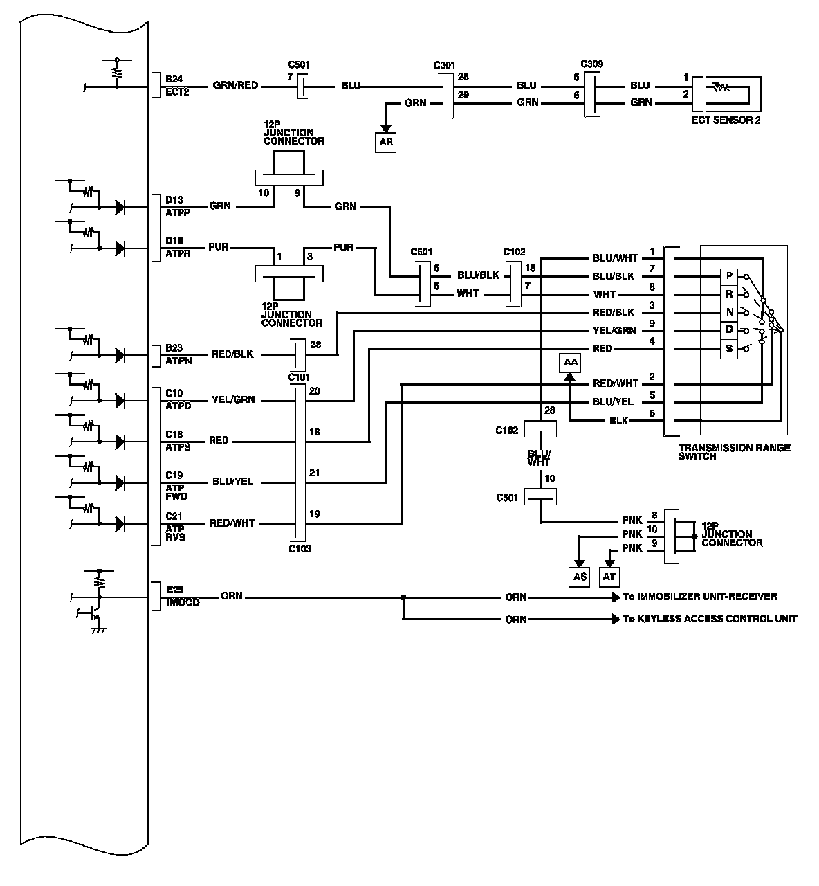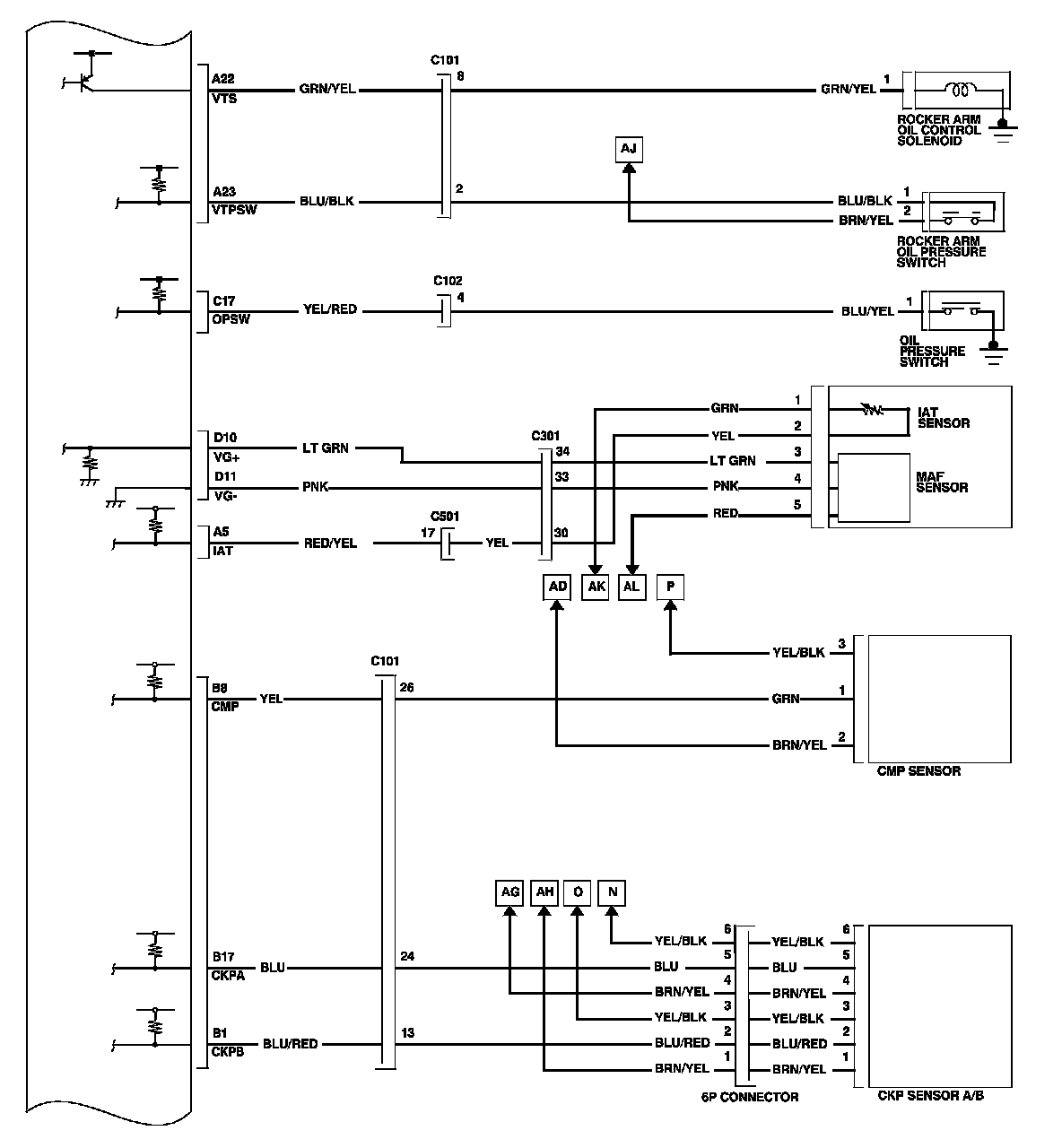 PCM Inputs and Outputs at PCM Connector C (22P)