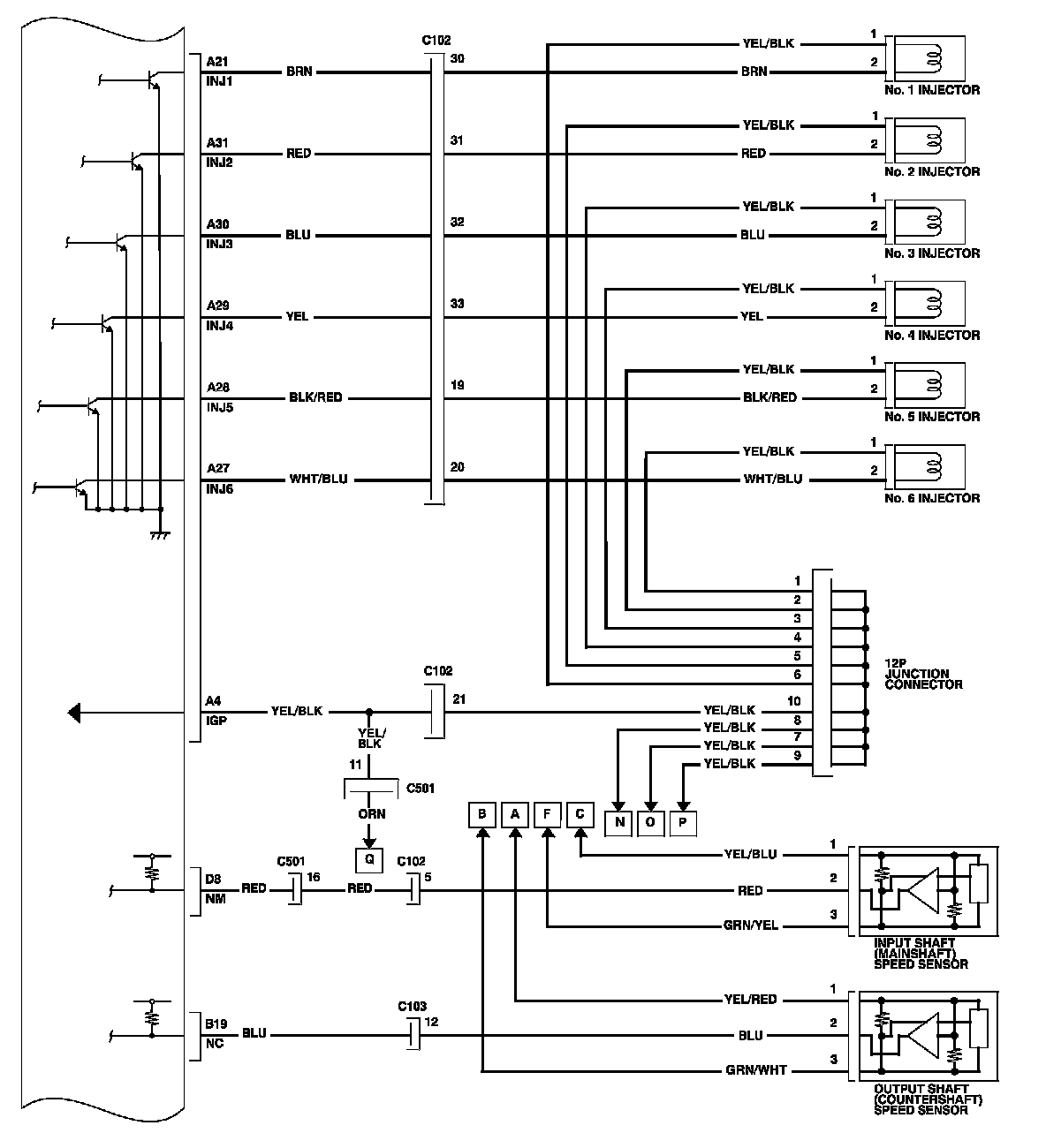 PCM Inputs and Outputs at PCM Connector A (31P)