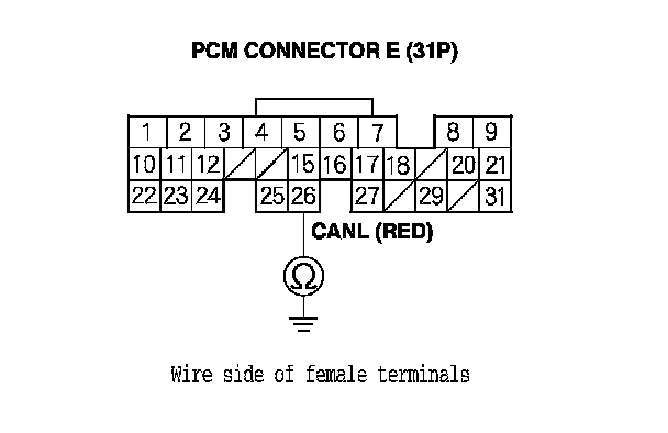 4. Measure the resistance between PCM connector terminals E15 and E26.