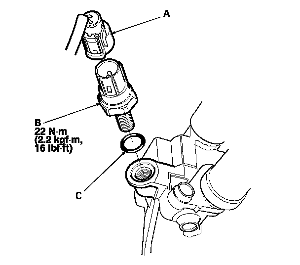 2. Install the parts in the reverse order of removal with a new O-ring (C).