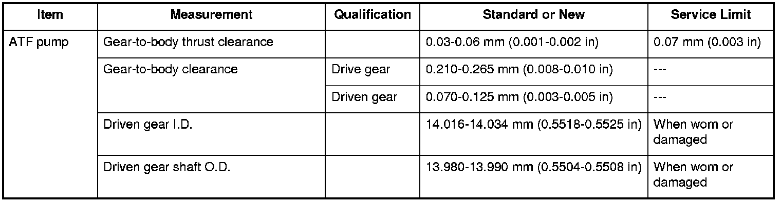 ATF Pump Specifications