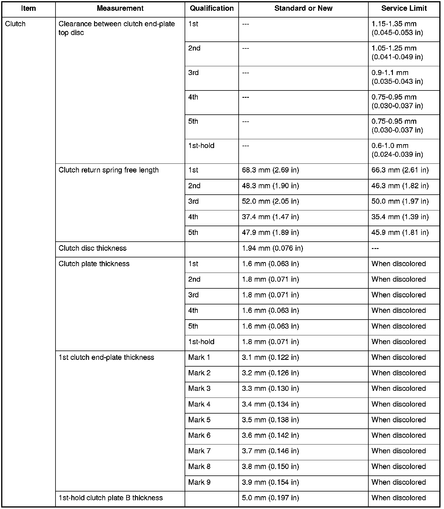Clutch Specifications