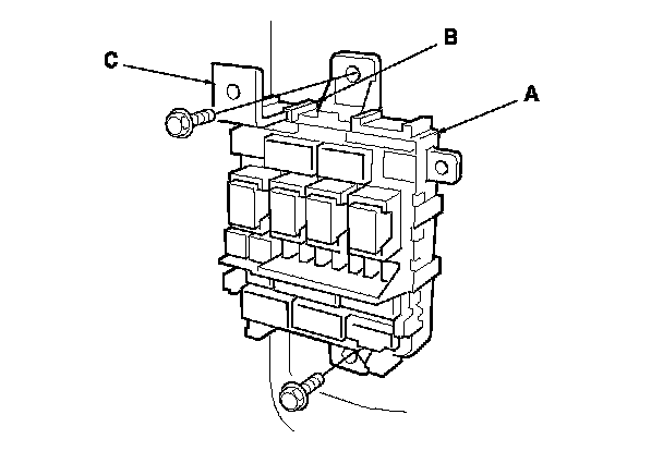 4. Remove the mounting bolts and remove the passenger's under-dash fuse/relay box.