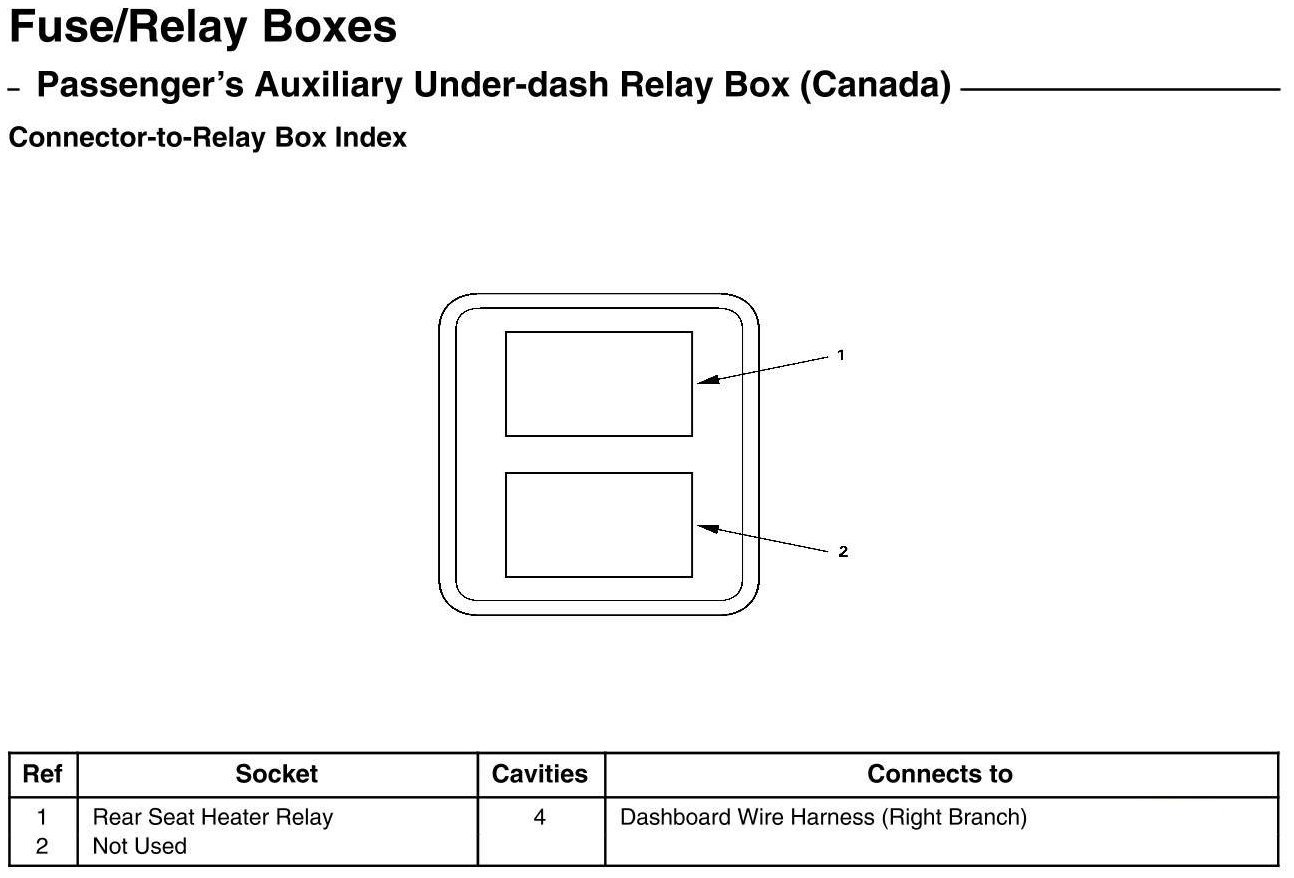 Passenger's Auxiliary Under-dash Relay Box - Connector-to-Relay Box Index (Canada)