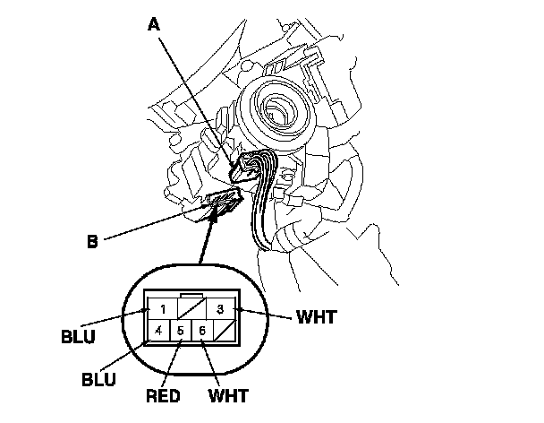 3. Disconnect the 7P connector (A) from the ignition switch (B).