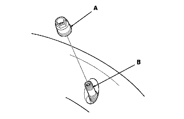 6. Remove the valve stem nut (A), then remove the tire pressure sensor with the valve stem (B) from the wheel.