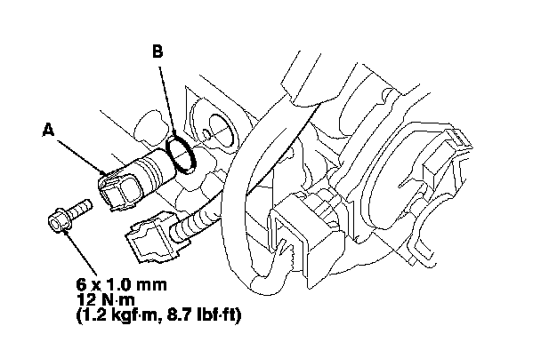 5. Install the new O-ring (B) on the new input shaft (mainshaft) speed sensor, then install the input shaft (mainshaft) speed sensor.