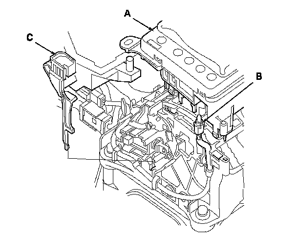 2. Move the A/T gear position indicator panel (A) up from the shift lever bracket by releasing the locks, and remove the indicator light socket (B) from the indicator panel.