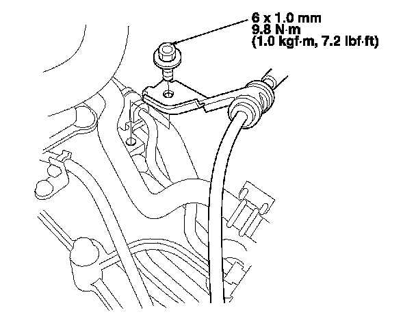 18. Secure the shift cable bracket on the steering gearbox stiffener with the bolt.