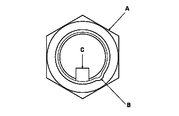 8. Make marks (A) across the companion flange (B) and the input shaft (C).