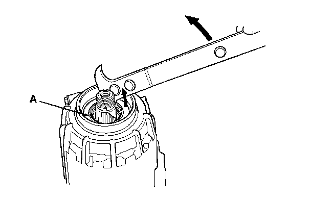 2. Raise the locknut tab (A) from the groove of the input shaft, making sure that the tab completely clears the groove to prevent damaging the input shaft.