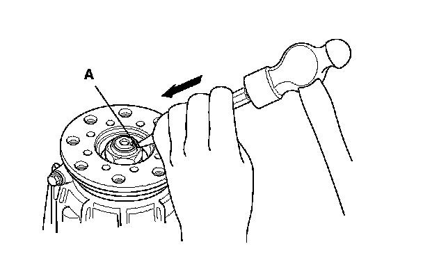 11. Install a new 38 x 67 x 9 mm front case oil seal (A) using the oil seal driver D and the 40 mm inner driver handle.