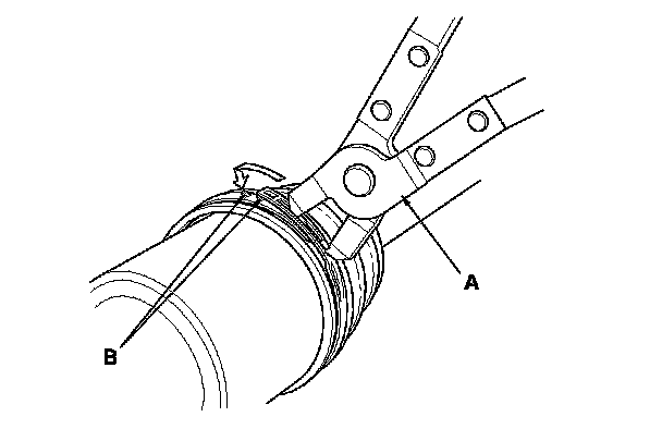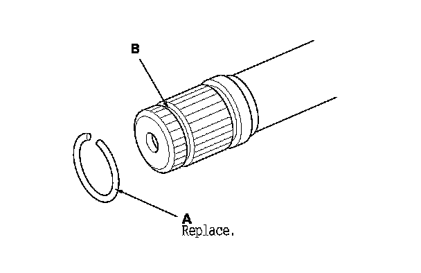 4. Install the stop ring (A) into the driveshaft groove (B).