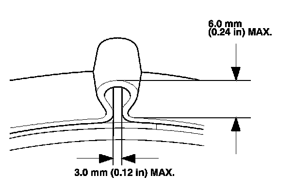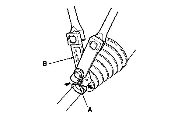 12. Close the ear portion (A) of the band using a commercially available seal clamp tool (Kent-Moore J-35910 or equivalent) (B).
