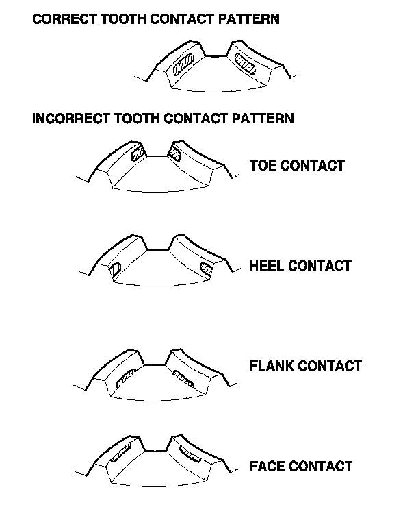 18. Remove the transfer cover and the transfer hypoid drive gear/shaft assembly, and check the transfer hypoid drive gear tooth contact pattern.