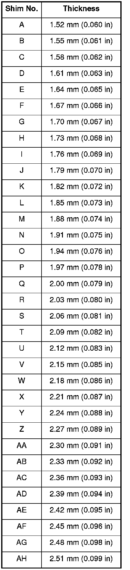 43. Measure thickness of the removed 80 mm thrust shim, and select the new 80 mm shim.