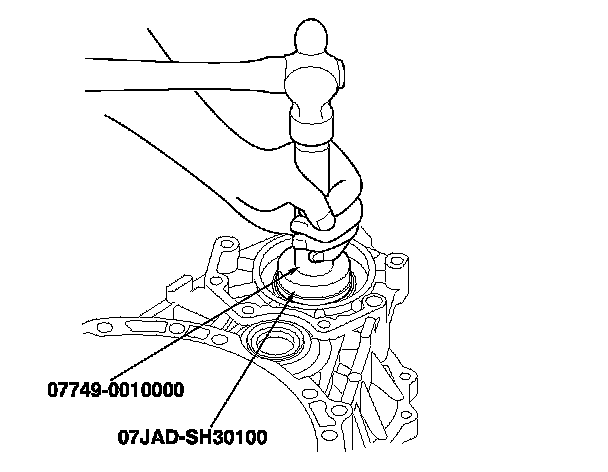 2. Install the new oil seal flush to the torque converter housing using the driver and the attachment (65 mm).