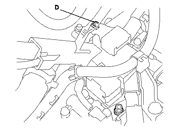 13. Remove the air cleaner, Service and Repair and connect the oil pressure gauge to the 2nd clutch pressure inspection port (D). Then temporarily install the air cleaner.