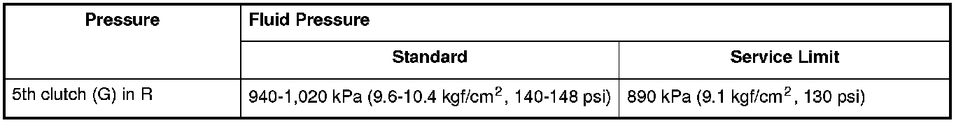 27. Shift to R, then release the brake pedal. Raise the engine speed to 2,000 rpm, and measure the 5th clutch pressure at the 5th clutch pressure inspection port.