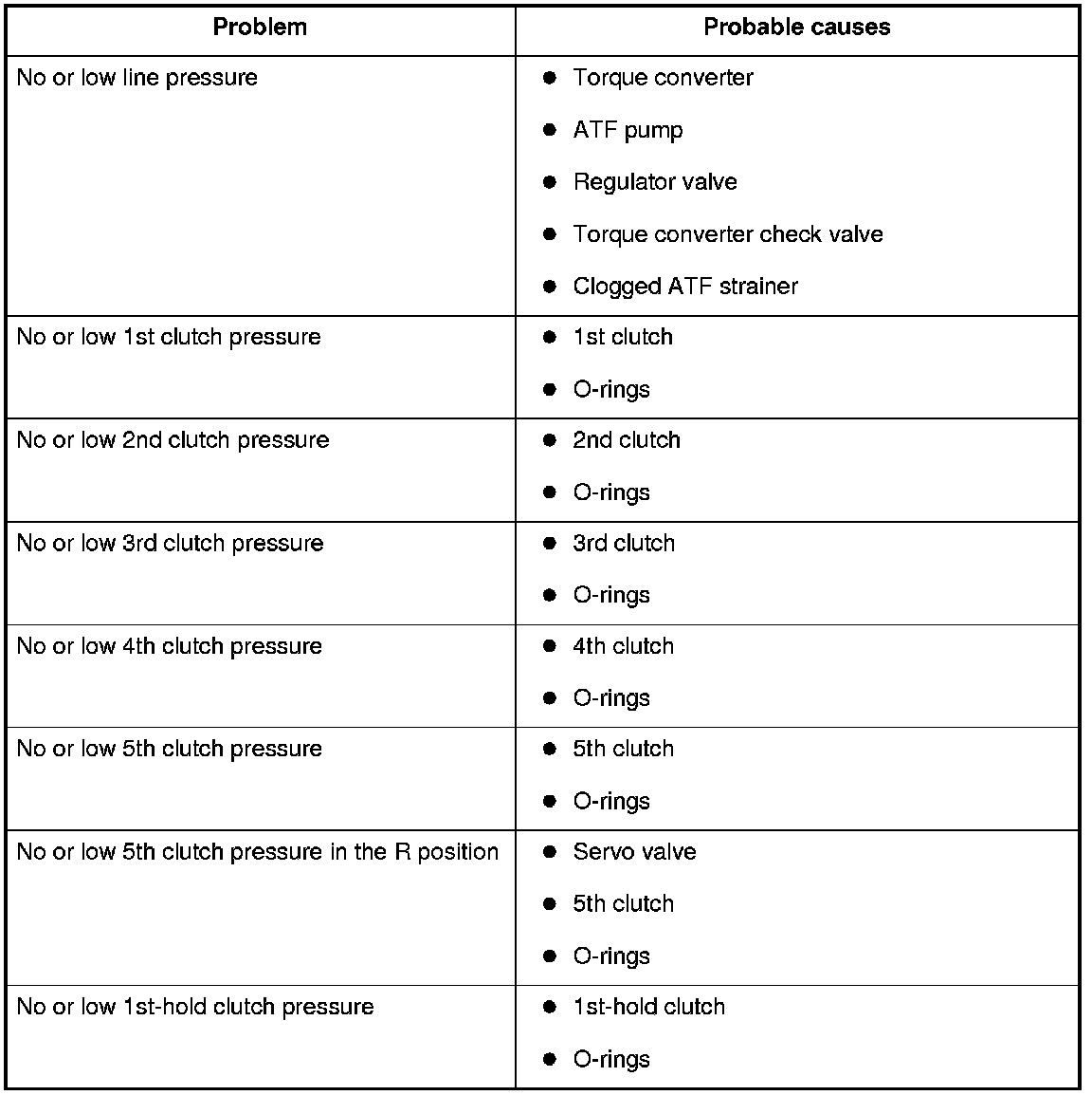 30. If any of the pressures are out of the service limit, refer to the problems and probable causes listed in the table.