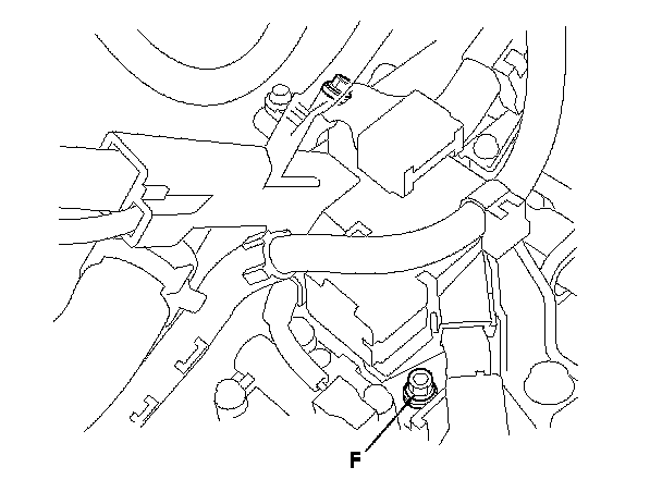 21. Connect the oil pressure gauge to the 4th clutch pressure inspection port (F).