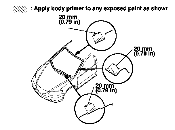 - Never touch the primed surfaces with your hands. If you do, the adhesive may not bond to the windshield properly, causing a leak after the windshield is installed.